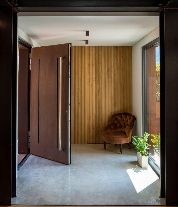 Doghe inclinabili che possono essere regolate per mezzo di un meccanismo automatizzato a seconda dell’angolo d’incidenza della luce diretta: riduzione della luce, l’apertura totale e la sicurezza. Le doghe sono rivestibili in legno o acciaio.